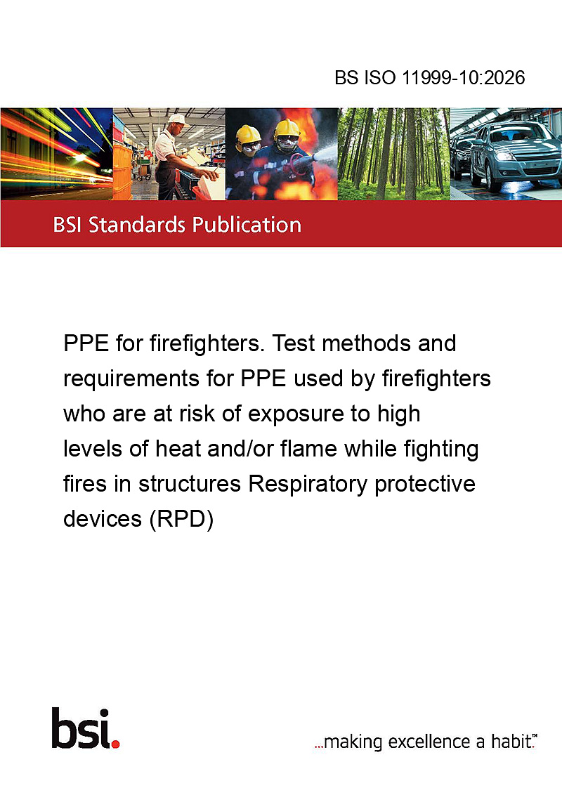 This standard BS ISO 11999-10:2026 PPE for firefighters. Test methods and requirements for PPE used by firefighters who are at risk of exposure to high levels of heat and/or flame while fighting fires in structures is classified in these ICS categories:
