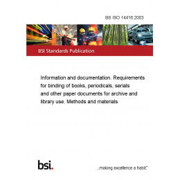 Information and documentation. Requirements for binding of books, periodicals, serials and other paper documents for archive and library use. Methods and materials