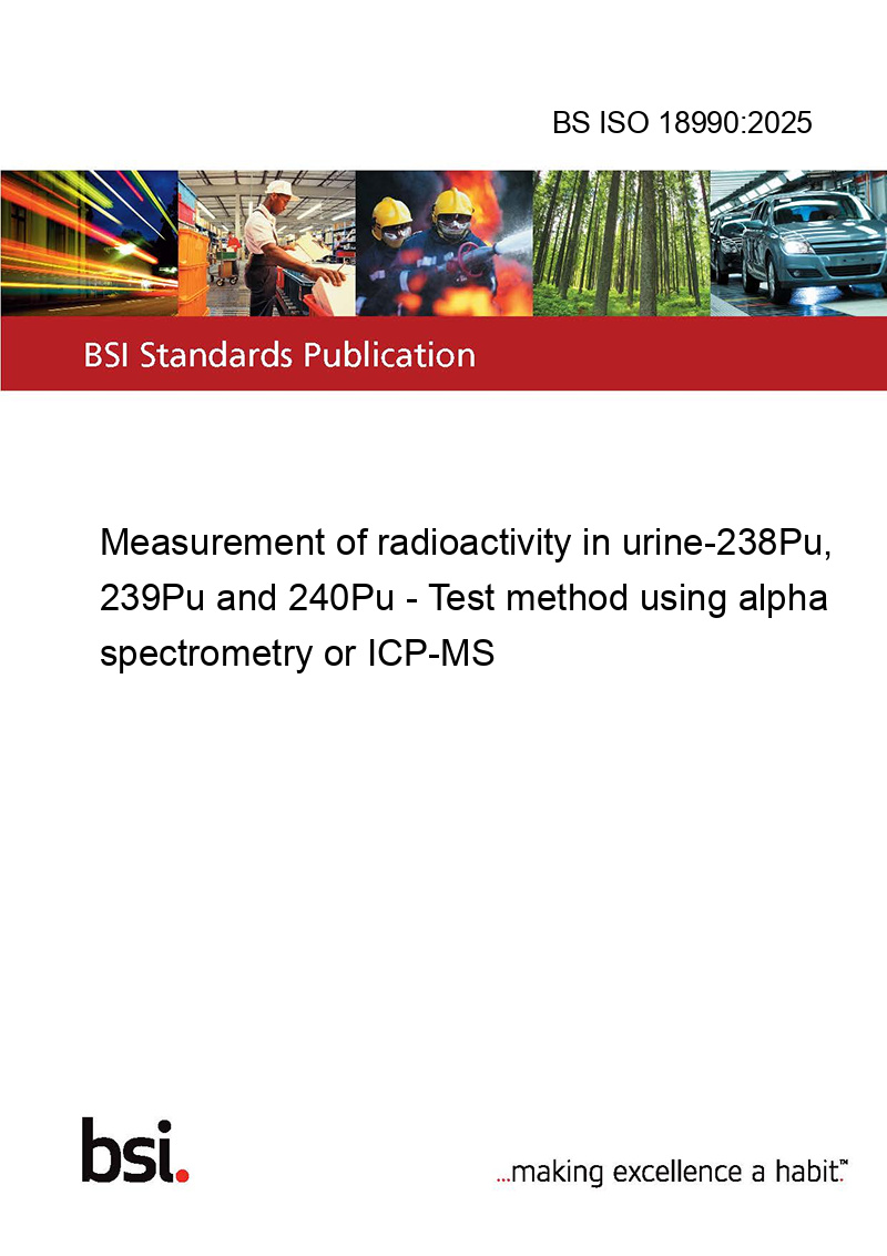 This standard BS ISO 18990:2025 Measurement of radioactivity in urine-238Pu, 239Pu and 240Pu - Test method using alpha spectrometry or ICP-MS is classified in these ICS categories: