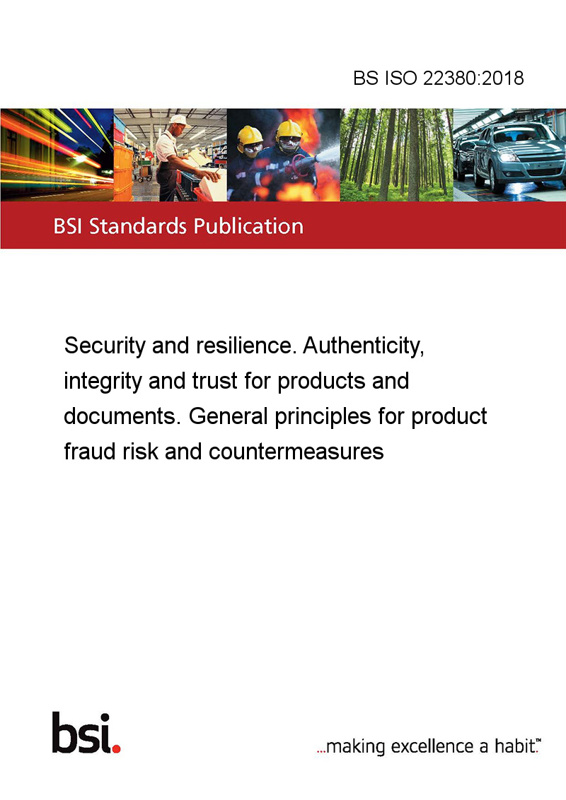 BS ISO 22380:2018 Security and resilience. Authenticity, integrity and trust for products and documents. General principles for product fraud risk and countermeasures
