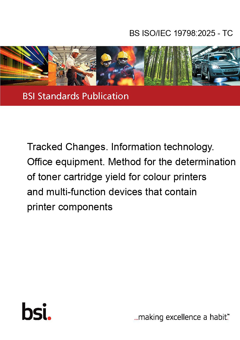 This standard BS ISO/IEC 19798:2025 - TC Tracked Changes. Information technology. Office equipment. Method for the determination of toner cartridge yield for colour printers and multi-function devices that contain printer components is classified in these ICS categories: