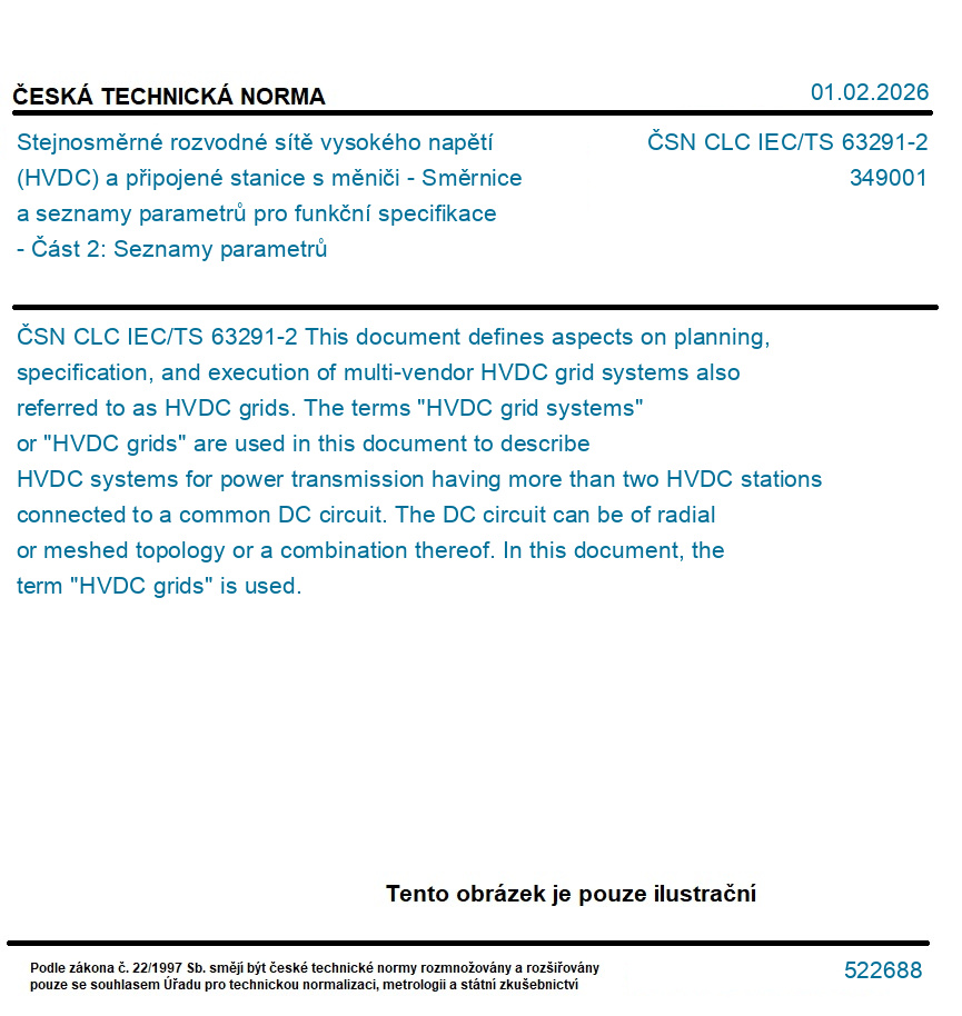 Stejnosměrné rozvodné sítě vysokého napětí (HVDC) a připojené stanice s měniči - Směrnice a seznamy parametrů pro funkční specifikace - Část 2: Seznamy parametrů