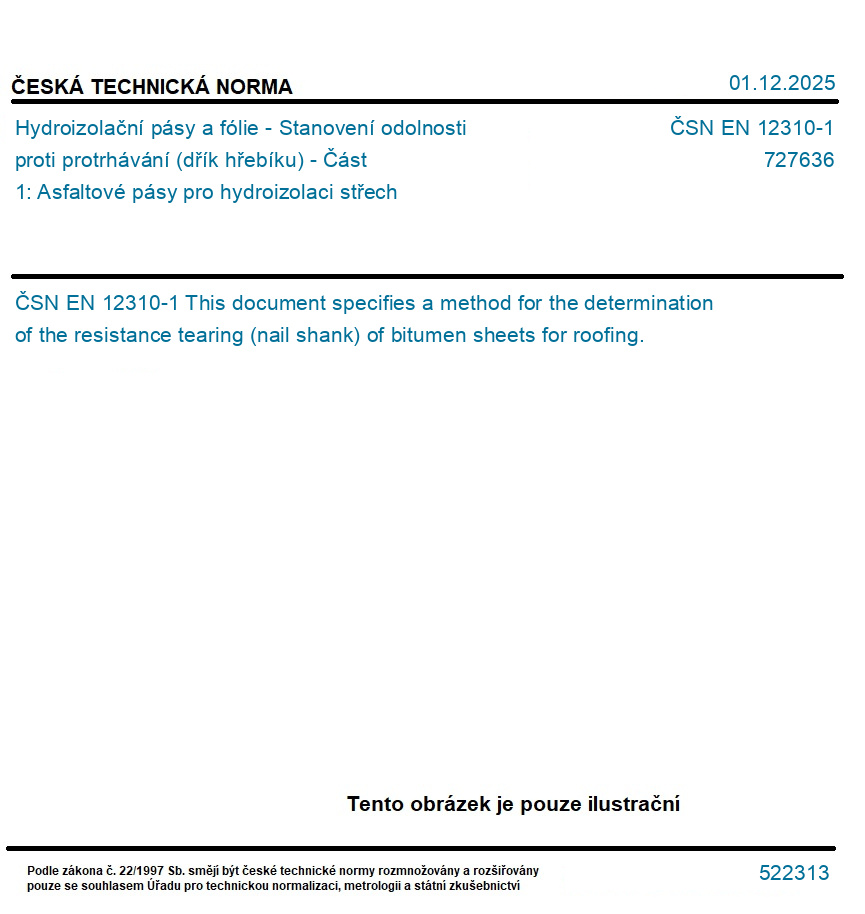 Hydroizolační pásy a fólie - Stanovení odolnosti proti protrhávání (dřík hřebíku) - Část 1: Asfaltové pásy pro hydroizolaci střech
