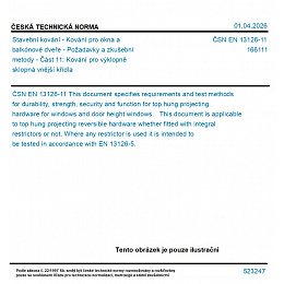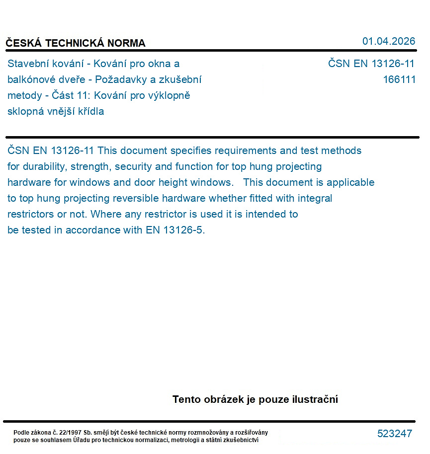 Stavební kování - Kování pro okna a balkónové dveře - Požadavky a zkušební metody - Část 11: Kování pro výklopně sklopná vnější křídla
