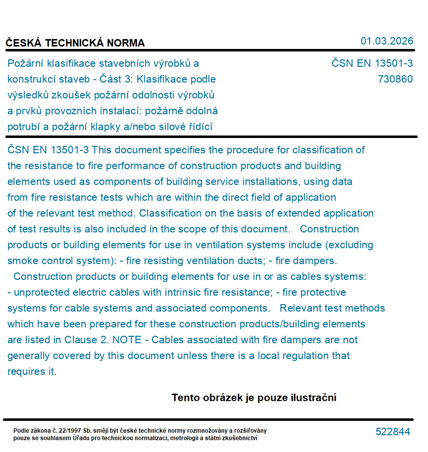 | Označení normy: | ČSN EN 13501-3 |
