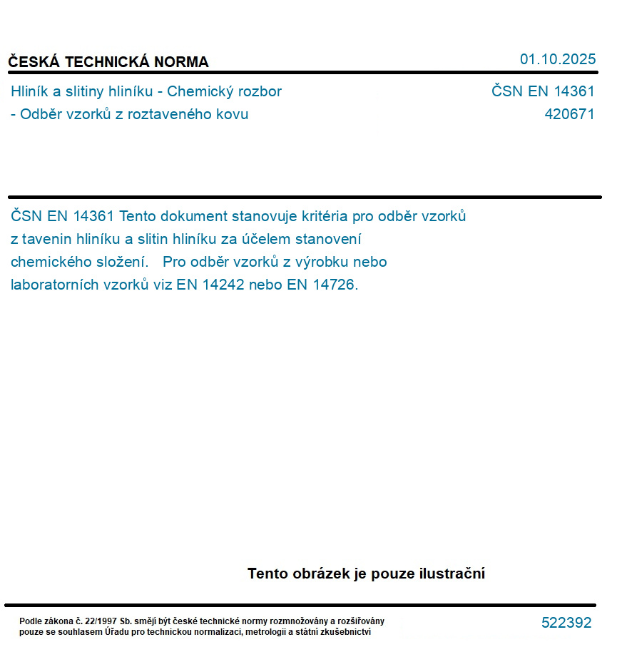 Hliník a slitiny hliníku - Chemický rozbor - Odběr vzorků z roztaveného kovu