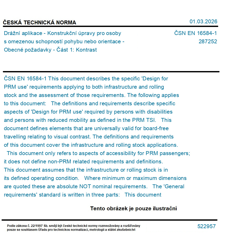 Drážní aplikace - Konstrukční úpravy pro osoby s omezenou schopností pohybu nebo orientace - Obecné požadavky - Část 1: Kontrast