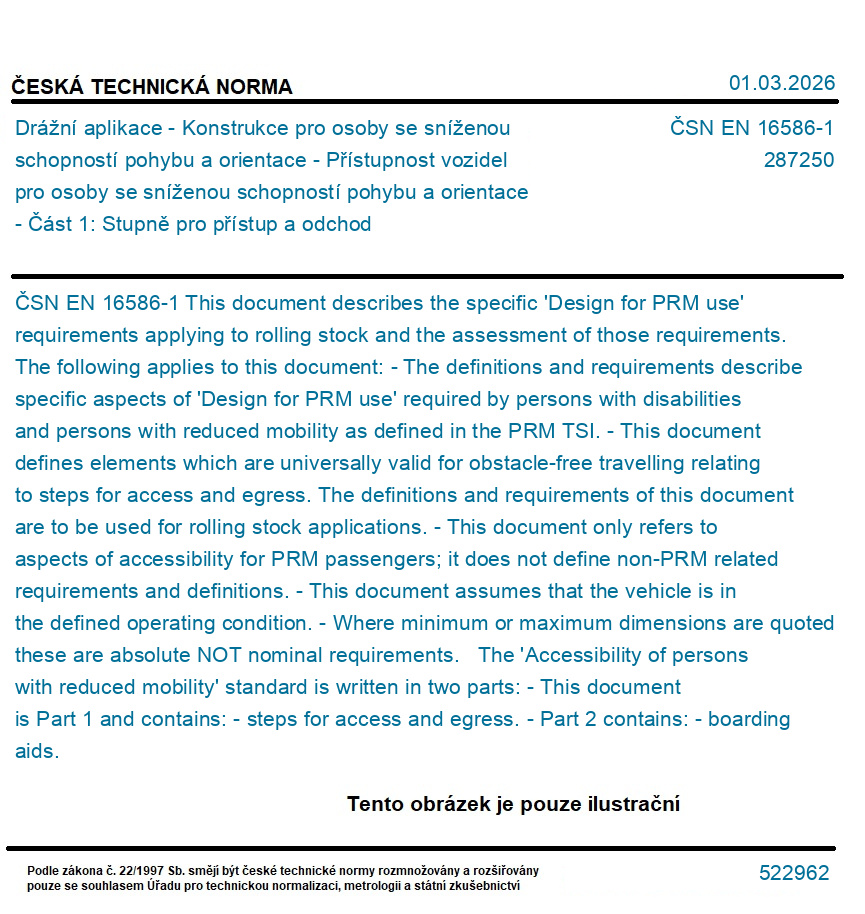 Drážní aplikace - Konstrukce pro osoby se sníženou schopností pohybu a orientace - Přístupnost vozidel pro osoby se sníženou schopností pohybu a orientace - Část 1: Stupně pro přístup a odchod