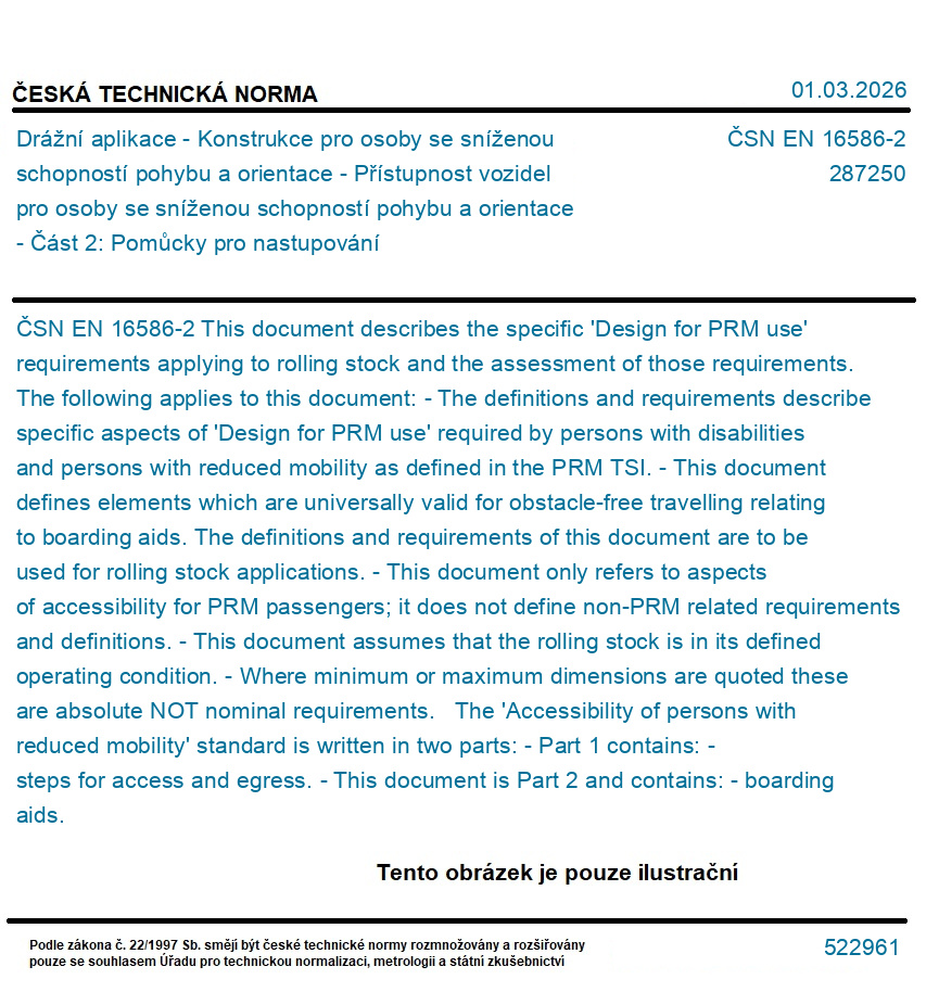 Drážní aplikace - Konstrukce pro osoby se sníženou schopností pohybu a orientace - Přístupnost vozidel pro osoby se sníženou schopností pohybu a orientace - Část 2: Pomůcky pro nastupování