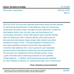 This document specifies performance levels and test methods for the following characteristics of slide fasteners made from interlocking components mounted on tapes: strengths of puller attachment, closed-end slide fastener bottom stop, top stop, open-end slide fastener box, reciprocating mechanism, closed slide fastener when extended laterally, open-end attachment when extended laterally, slider locking device, and open-end slide fastener single stringer slider retention and slider resistance to torque. NOTE - The tests specified in Annexes B to K have been specifically devised to permit their direct application to finished slide fasteners with a view to giving the user reasonable assurance that a slide fastener conforming to the requirements of this document can satisfactorily fulfil its intended purpose. Annex L gives information about sampling procedures for bulk quantities of slide fasteners. In addition, performance levels are also specified for colour fastness to washing, dry cleaning and water, and for dimensional stability to washing and dry cleaning. This document is applicable to all different types of slide fasteners for general use and is not applicable to slide fasteners for specialist purposes (for example: pressure sealed slide fasteners for diving suits).