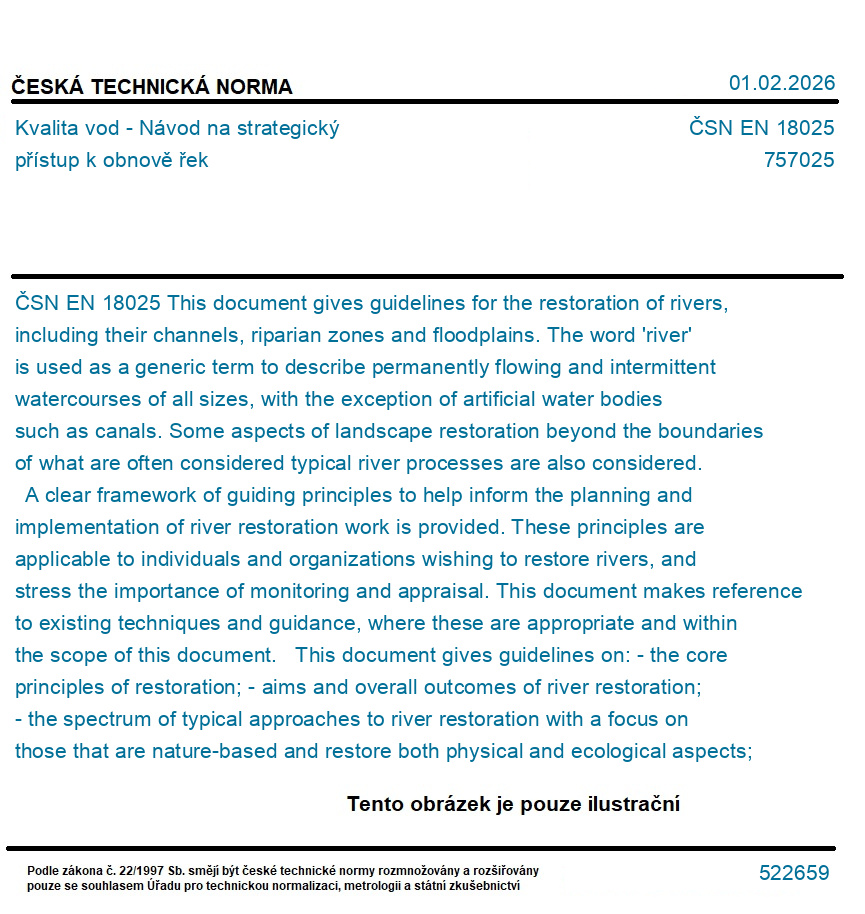 This document gives guidelines for the restoration of rivers, including their channels, riparian zones and floodplains. The word 'river' is used as a generic term to describe permanently flowing and intermittent watercourses of all sizes, with the exception of artificial water bodies such as canals. Some aspects of landscape restoration beyond the boundaries of what are often considered typical river processes are also considered. A clear framework of guiding principles to help inform the planning and implementation of river restoration work is provided. These principles are applicable to individuals and organizations wishing to restore rivers, and stress the importance of monitoring and appraisal. This document makes reference to existing techniques and guidance, where these are appropriate and within the scope of this document. This document gives guidelines on: - the core principles of restoration; - aims and overall outcomes of river restoration; - the spectrum of typical approaches to river restoration with a focus on those that are nature-based and restore both physical and ecological aspects; - identifying opportunities for restoration and possible constraints, with a focus on physical and natural rather than socio-economic aspects; - different scales of restoration and how restoration works across different catchments and landscapes; - the importance of monitoring and appraising restoration work across the range of approaches and scales.