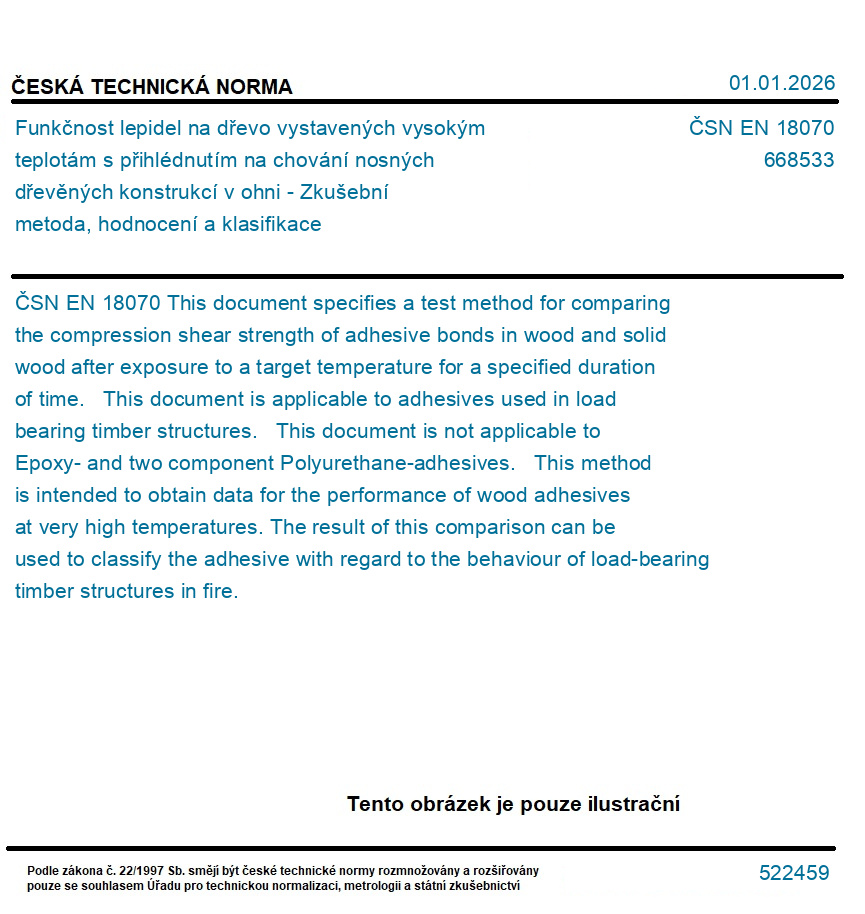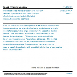 Funkčnost lepidel na dřevo vystavených vysokým teplotám s přihlédnutím na chování nosných dřevěných konstrukcí v ohni - Zkušební metoda, hodnocení a klasifikace