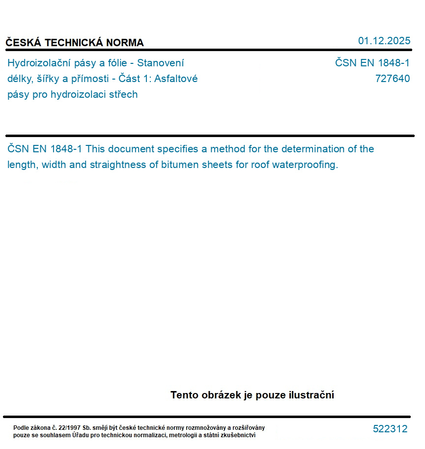 Hydroizolační pásy a fólie - Stanovení délky, šířky a přímosti - Část 1: Asfaltové pásy pro hydroizolaci střech