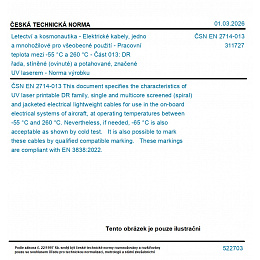 Letectví a kosmonautika - Elektrické kabely, jedno a mnohožilové pro všeobecné použití - Pracovní teplota mezi -55 °C a 260 °C - Část 013: DR řada, stíněné (ovinuté) a potahované, značené UV laserem - Norma výrobku