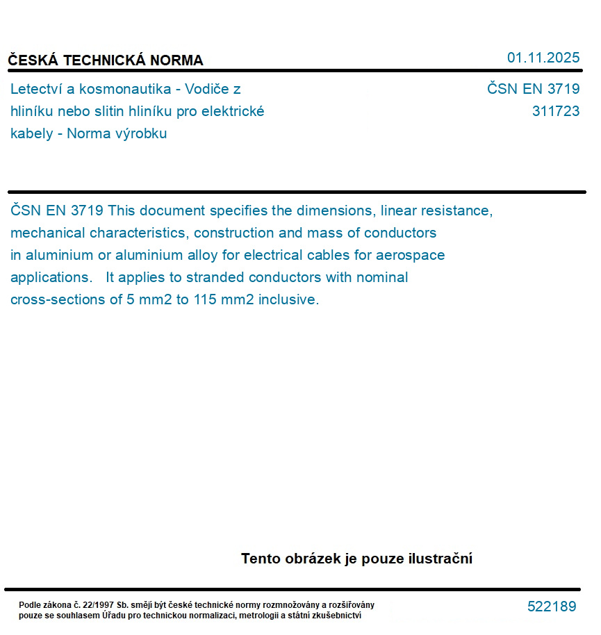 Letectví a kosmonautika - Vodiče z hliníku nebo slitin hliníku pro elektrické kabely - Norma výrobku