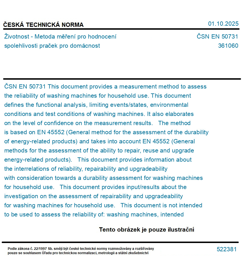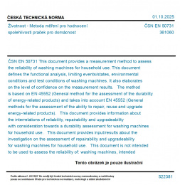 This document provides a measurement method to assess the reliability of washing machines for household use. This document defines the functional analysis, limiting events/states, environmental conditions and test conditions of washing machines. It also elaborates on the level of confidence on the measurement results. The method is based on EN 45552 (General method for the assessment of the durability of energy-related products) and takes into account EN 45552 (General methods for the assessment of the ability to repair, reuse and upgrade energy-related products). This document provides information about the interrelations of reliability, repairability and upgradeability with consideration towards a durability assessment for washing machines for household use. This document provides input/results about the investigation on the assessment of repairability and upgradeability for washing machines for household use. This document is not intended to be used to assess the reliability of: washing machines, intended for commercial or industrial use; washer-dryers.