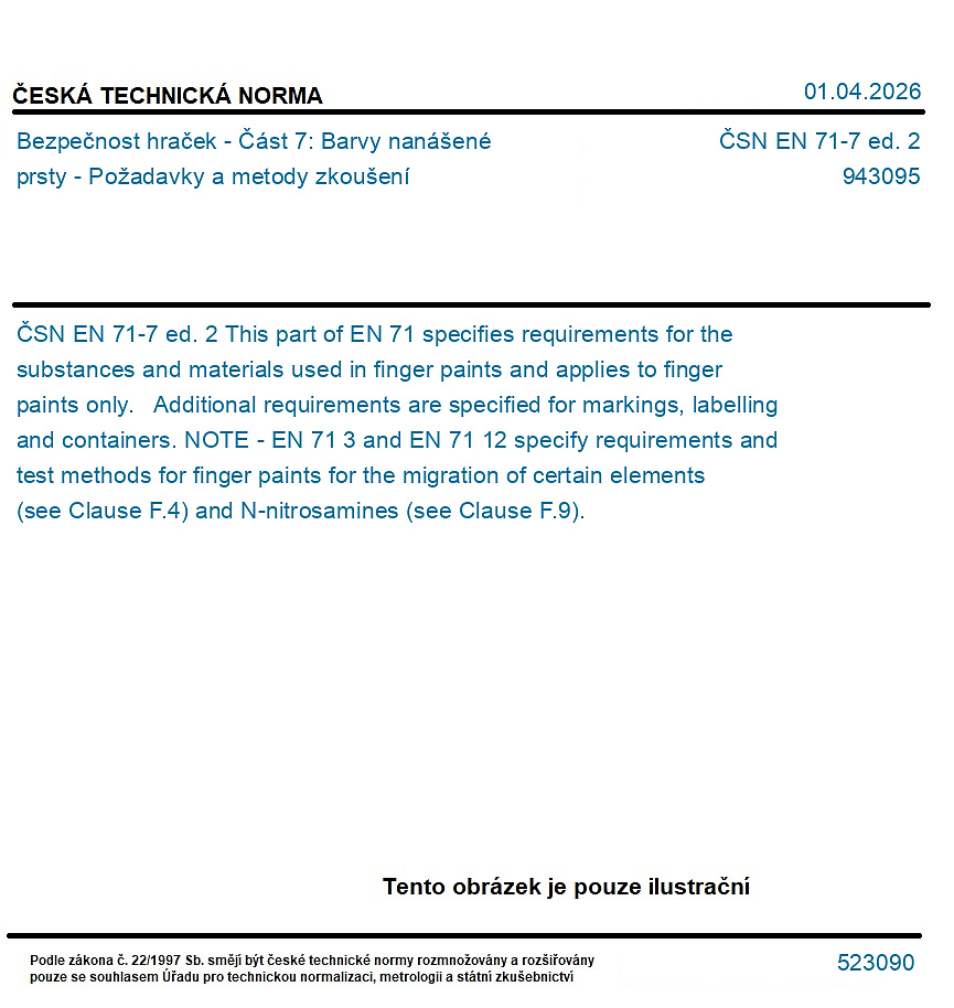 | Označení normy: | ČSN EN 71-7 ed. 2 |