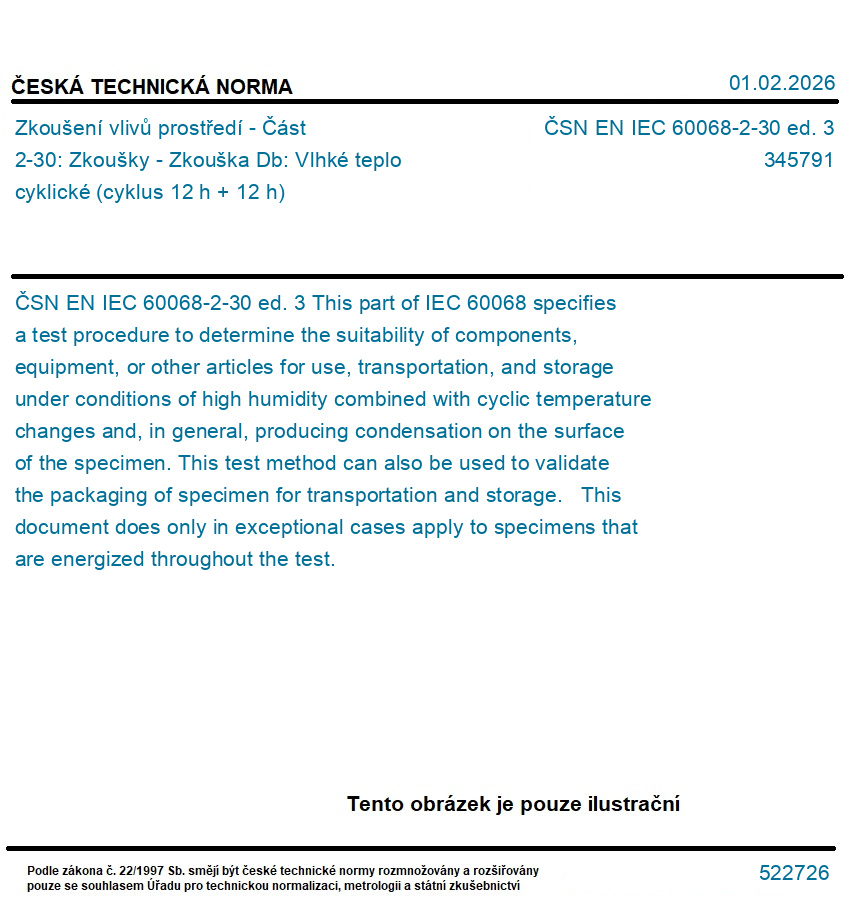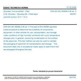 | Označení normy: | ČSN EN IEC 60068-2-30 ed. 3 |