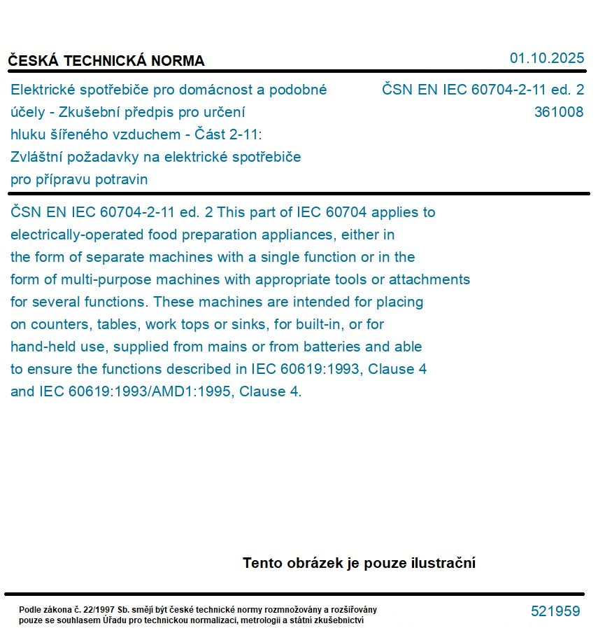 S účinností od 2028-05-31 se nahrazuje ČSN EN 60704-2-11 (36 1008) z prosince 1999, která do uvedeného data platí souběžně s touto normou.