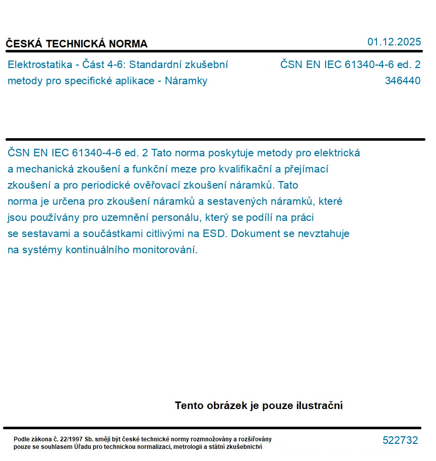 | Označení normy: | ČSN EN IEC 61340-4-6 ed. 2 |