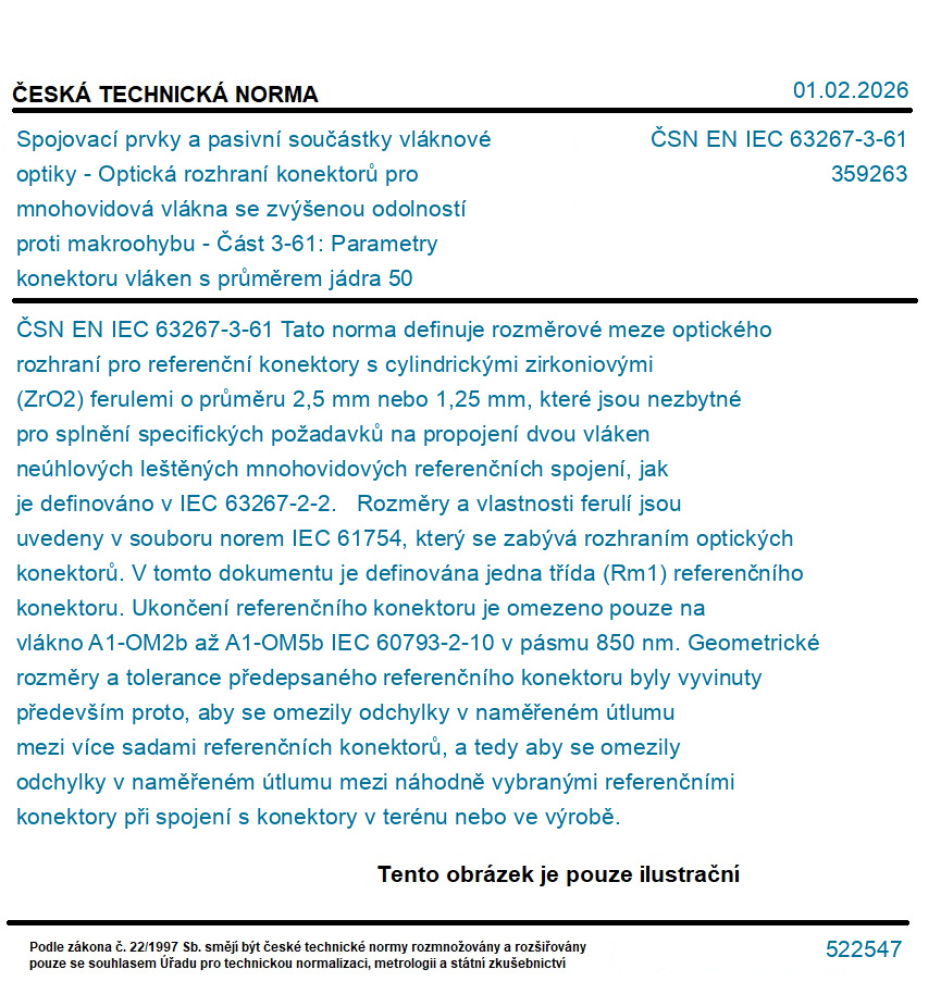 S účinností od 2028-08-31 se nahrazuje ČSN EN IEC 61755-6-2 (35 9256) z února 2019, která do uvedeného data platí souběžně s touto normou.