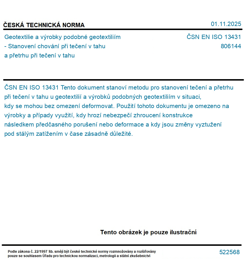 Geotextilie a výrobky podobné geotextiliím - Stanovení chování při tečení v tahu a přetrhu při tečení v tahu
