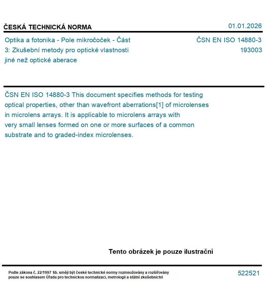 Optika a fotonika - Pole mikročoček - Část 3: Zkušební metody pro optické vlastnosti jiné než optické aberace