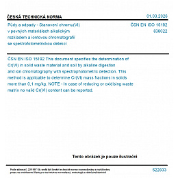 Půdy a odpady - Stanovení chromu(VI) v pevných materiálech alkalickým rozkladem a iontovou chromatografií se spektrofotometrickou detekcí