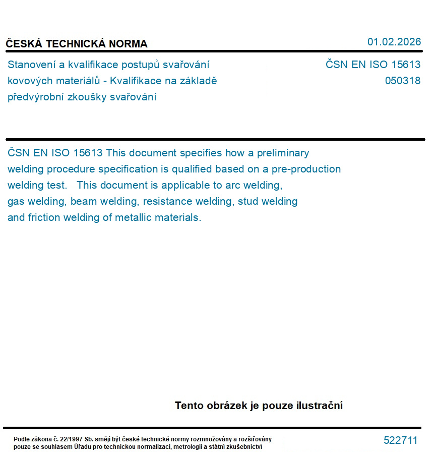 Stanovení a kvalifikace postupů svařování kovových materiálů - Kvalifikace na základě předvýrobní zkoušky svařování