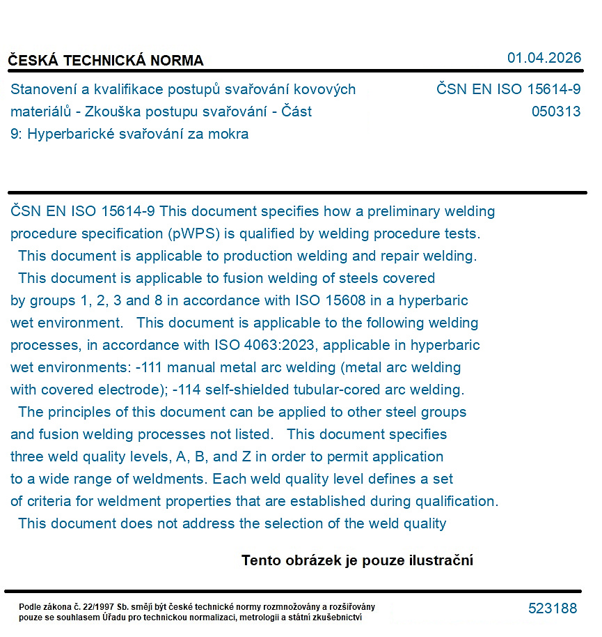 | Označení normy: | ČSN EN ISO 15614-9 |