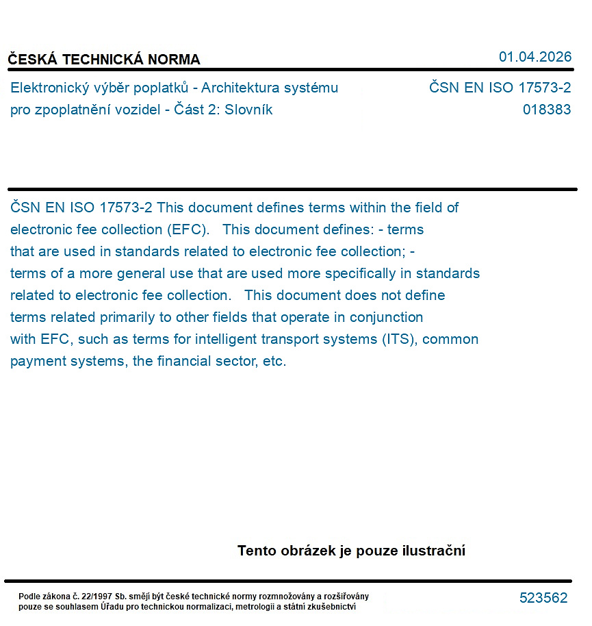 Elektronický výběr poplatků - Architektura systému pro zpoplatnění vozidel - Část 2: Slovník