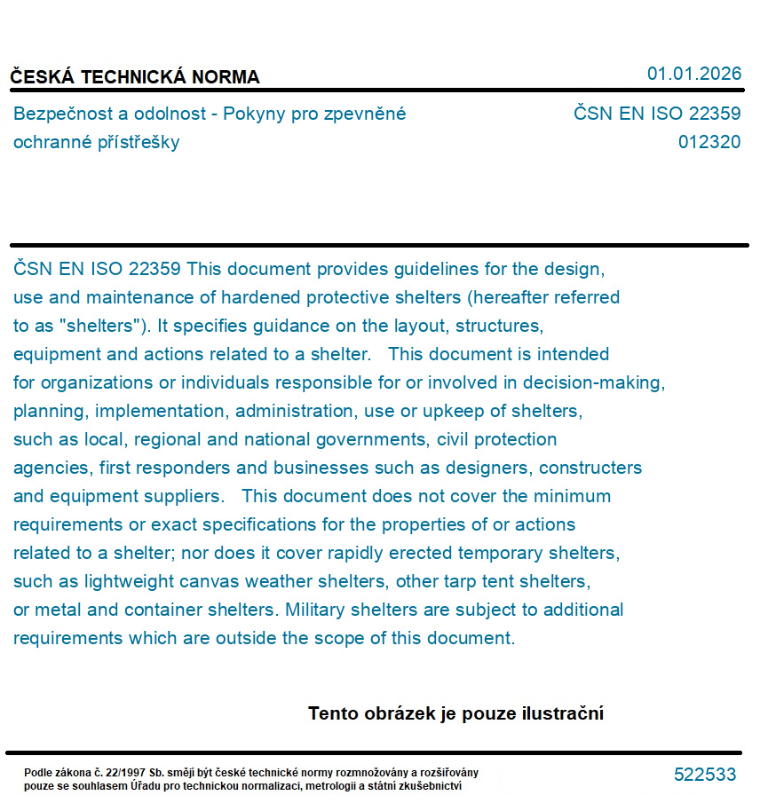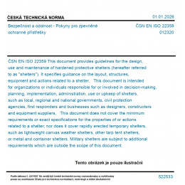 This document provides guidelines for the design, use and maintenance of hardened protective shelters (hereafter referred to as "shelters"). It specifies guidance on the layout, structures, equipment and actions related to a shelter. This document is intended for organizations or individuals responsible for or involved in decision-making, planning, implementation, administration, use or upkeep of shelters, such as local, regional and national governments, civil protection agencies, first responders and businesses such as designers, constructers and equipment suppliers. This document does not cover the minimum requirements or exact specifications for the properties of or actions related to a shelter; nor does it cover rapidly erected temporary shelters, such as lightweight canvas weather shelters, other tarp tent shelters, or metal and container shelters. Military shelters are subject to additional requirements which are outside the scope of this document.