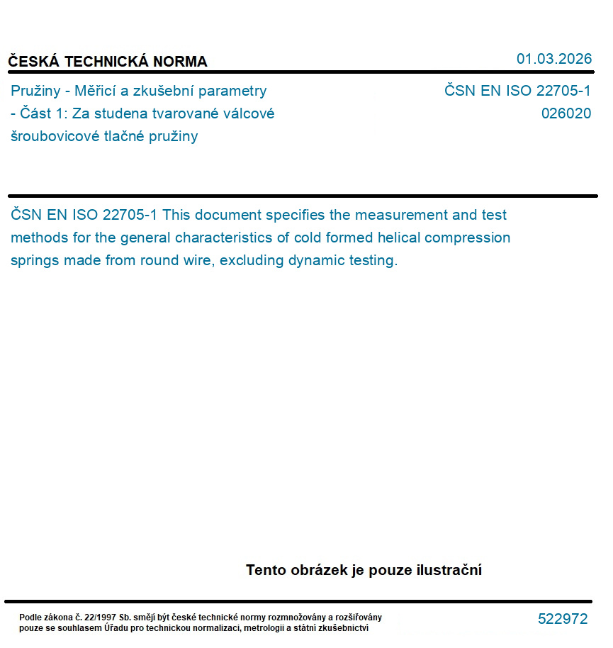 Pružiny - Měřicí a zkušební parametry - Část 1: Za studena tvarované válcové šroubovicové tlačné pružiny