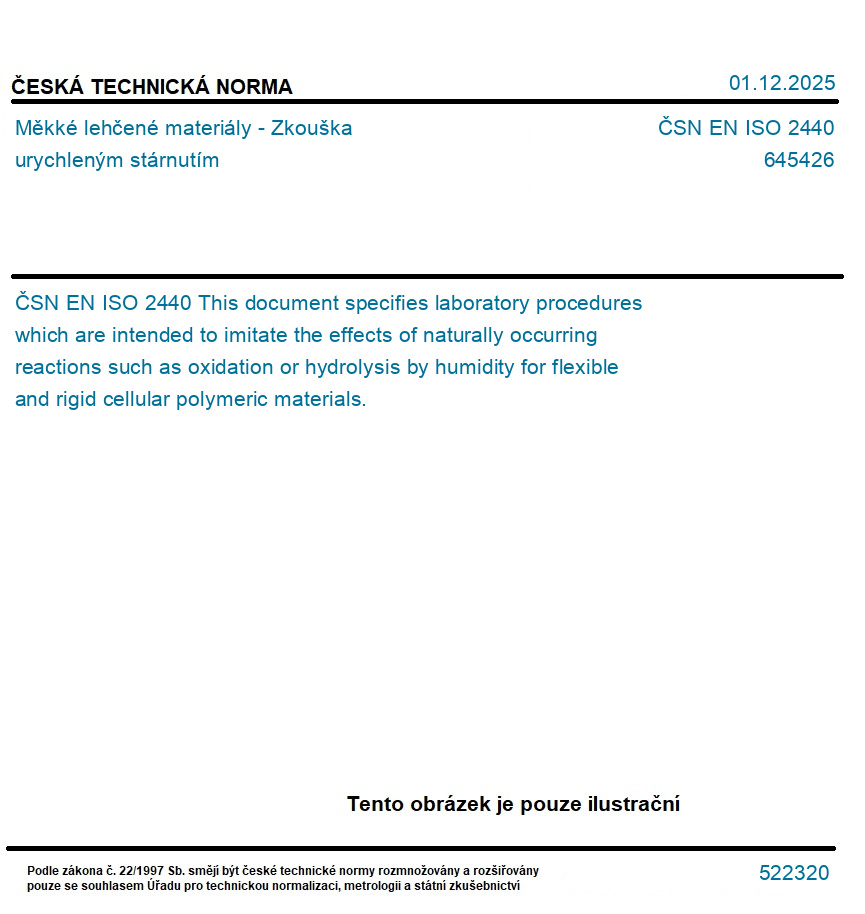ČSN EN ISO 2440 - Měkké lehčené materiály - Zkouška urychleným stárnutím Vydáno: 01.12.2025