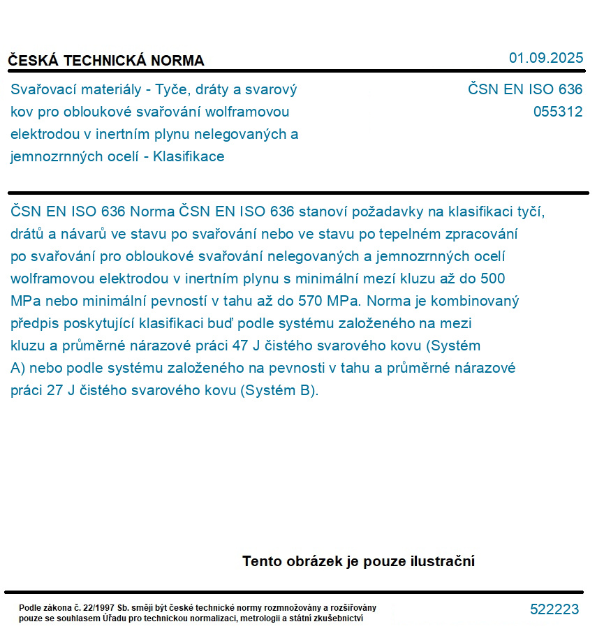 Svařovací materiály - Tyče, dráty a svarový kov pro obloukové svařování wolframovou elektrodou v inertním plynu nelegovaných a jemnozrnných ocelí - Klasifikace