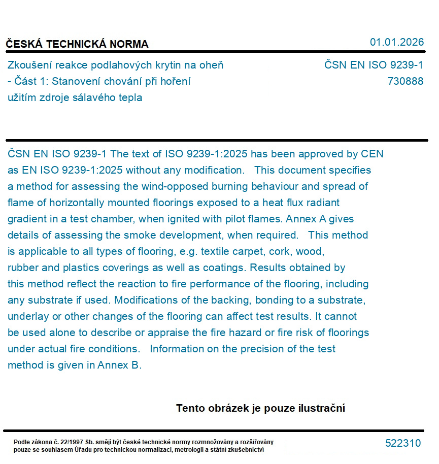 | Označení normy: | ČSN EN ISO 9239-1 |