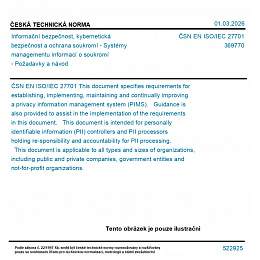 | Označení normy: | ČSN EN ISO/IEC 27701 |
