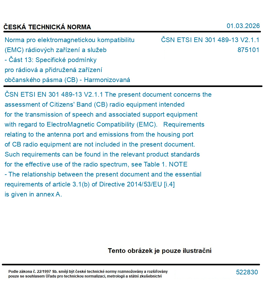 | Označení normy: | ČSN ETSI EN 301 489-13 V2.1.1 |