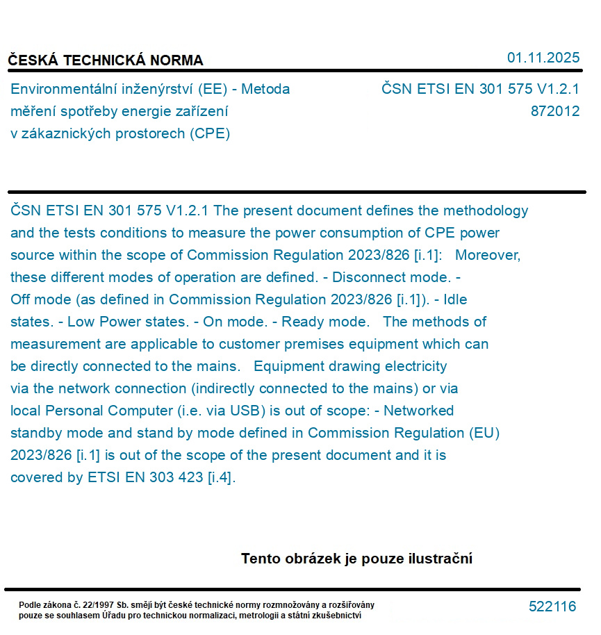 Environmentální inženýrství (EE) - Metoda měření spotřeby energie zařízení v zákaznických prostorech (CPE)