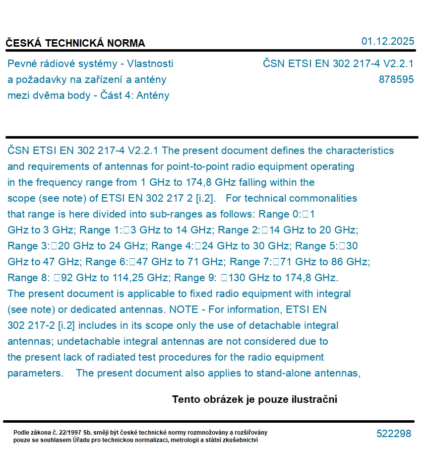 | Označení normy: | ČSN ETSI EN 302 217-4 V2.2.1 |