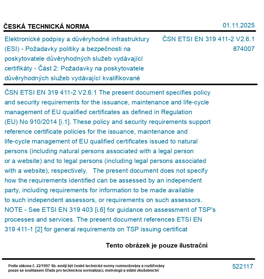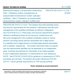 | Označení normy: | ČSN ETSI EN 319 411-2 V2.6.1 |