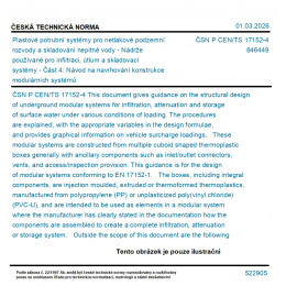 This document gives guidance on the structural design of underground modular systems for infiltration, attenuation and storage of surface water under various conditions of loading. The procedures are explained, with the appropriate variables in the design formulae, and provides graphical information on vehicle surcharge loadings. These modular systems are constructed from multiple cuboid shaped thermoplastic boxes generally with ancillary components such as inlet/outlet connectors, vents, and access/inspection provision. This guidance is for the design of modular systems conforming to EN 17152-1. The boxes, including integral components, are injection moulded, extruded or thermoformed thermoplastics, manufactured from polypropylene (PP) or unplasticized poly(vinyl chloride) (PVC-U), and are intended to be used as elements in a modular system where the manufacturer has clearly stated in the documentation how the components are assembled to create a complete infiltration, attenuation or storage system. Outside the scope of this document are the following conditions: - seismic loads; - lateral loads from adjacent structures and embankments; - influence of trees; - backfill materials not according to CEN/TR 17179 [1]. Geotextile and/or geomembrane used with modular systems are outside the scope of this document. NOTE - If reference is made in this document to Eurocode standards, the conditions in a national foreword or national annex are normally stated.