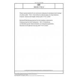 | Název produktu: | Plastics piping systems for non-pressure underground conveyance and storage of surface water - Part 2: Test method for determination of creep behaviour of boxes; German and English version prEN 17151-2:2025 |