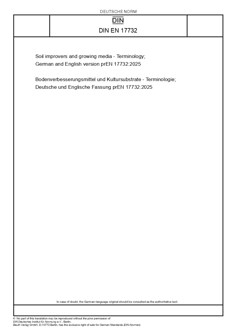 | Název produktu: | Soil improvers and growing media - Terminology; German and English version prEN 17732:2025 |