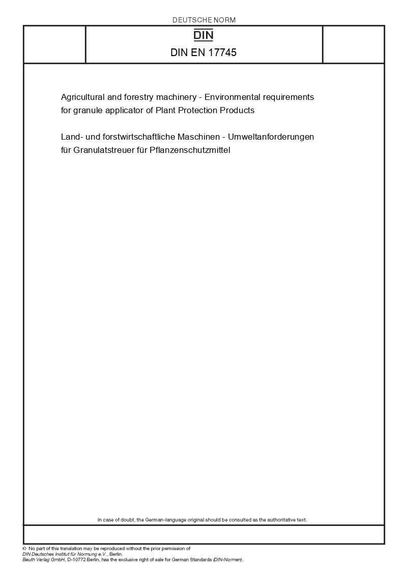 | Název produktu: | Agricultural and forestry machinery - Environmental requirements for granule applicator of Plant Protection Products |