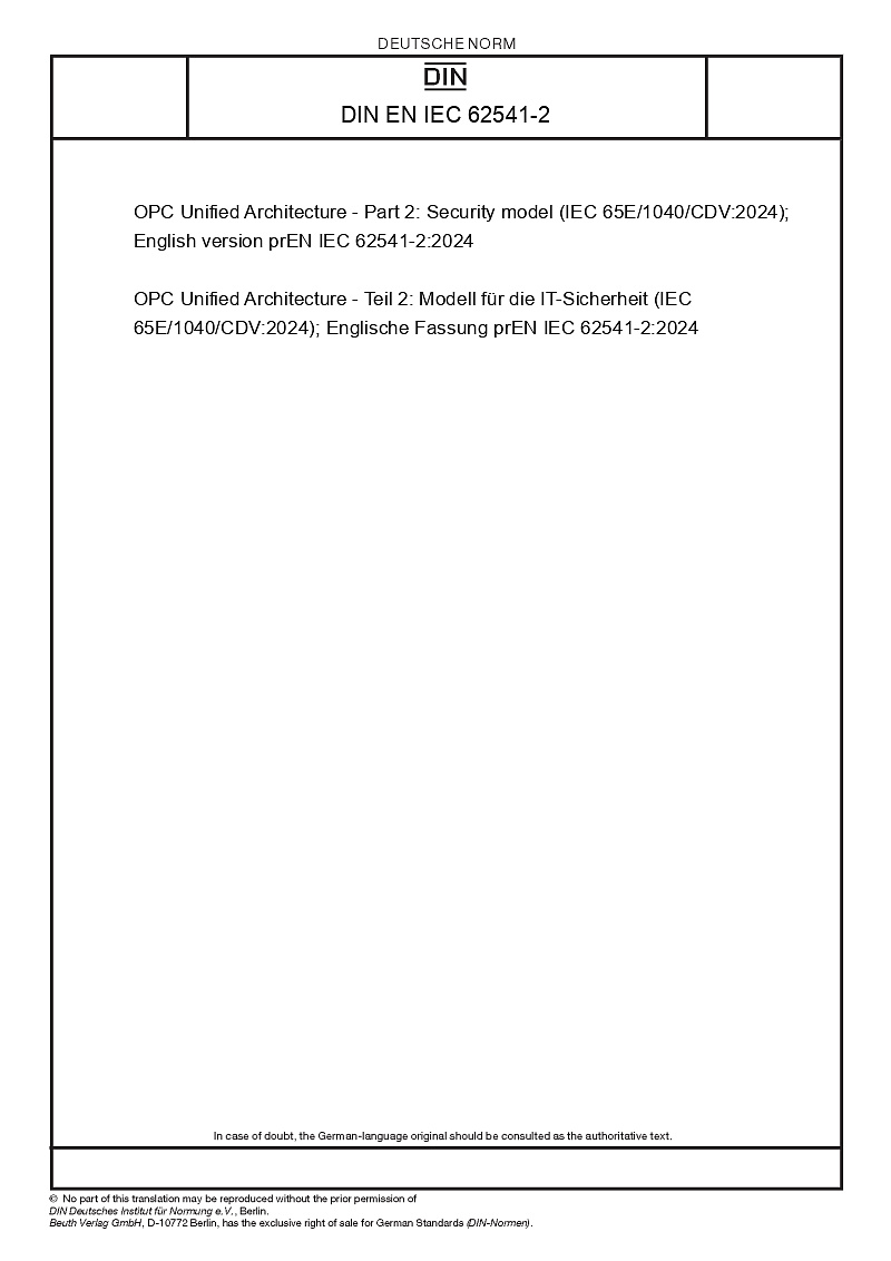OPC Unified Architecture - Part 2: Security model (IEC 65E/1040/CDV:2024); English version prEN IEC 62541-2:2024