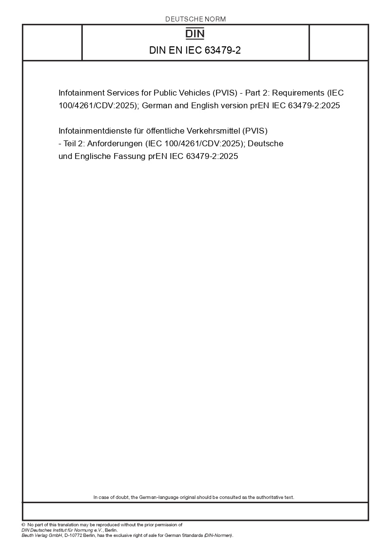 Infotainment Services for Public Vehicles (PVIS) - Part 2: Requirements (IEC 100/4261/CDV:2025); German and English version prEN IEC 63479-2:2025