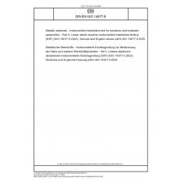 | Název produktu: | Metallic materials - Instrumented indentation test for hardness and materials parameters - Part 5: Linear elastic dynamic instrumented indentation testing (DIIT) (ISO 14577-5:2022); German and English version prEN ISO 14577-5:2025 |