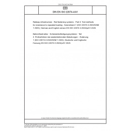 | Název produktu: | Railway infrastructure - Rail fastening systems - Part 4: Test methods for resistance to repeated loading - Amendment 1 (ISO 22074-4:2022/DAM 1:2025); German and English version EN ISO 22074-4:2024/prA1:2025 |