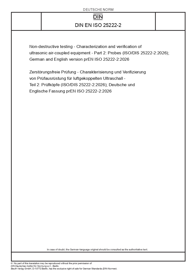 Non-destructive testing - Characterization and verification of ultrasonic air-coupled equipment - Part 2: Probes (ISO/DIS 25222-2:2026); German and English version prEN ISO 25222-2:2026